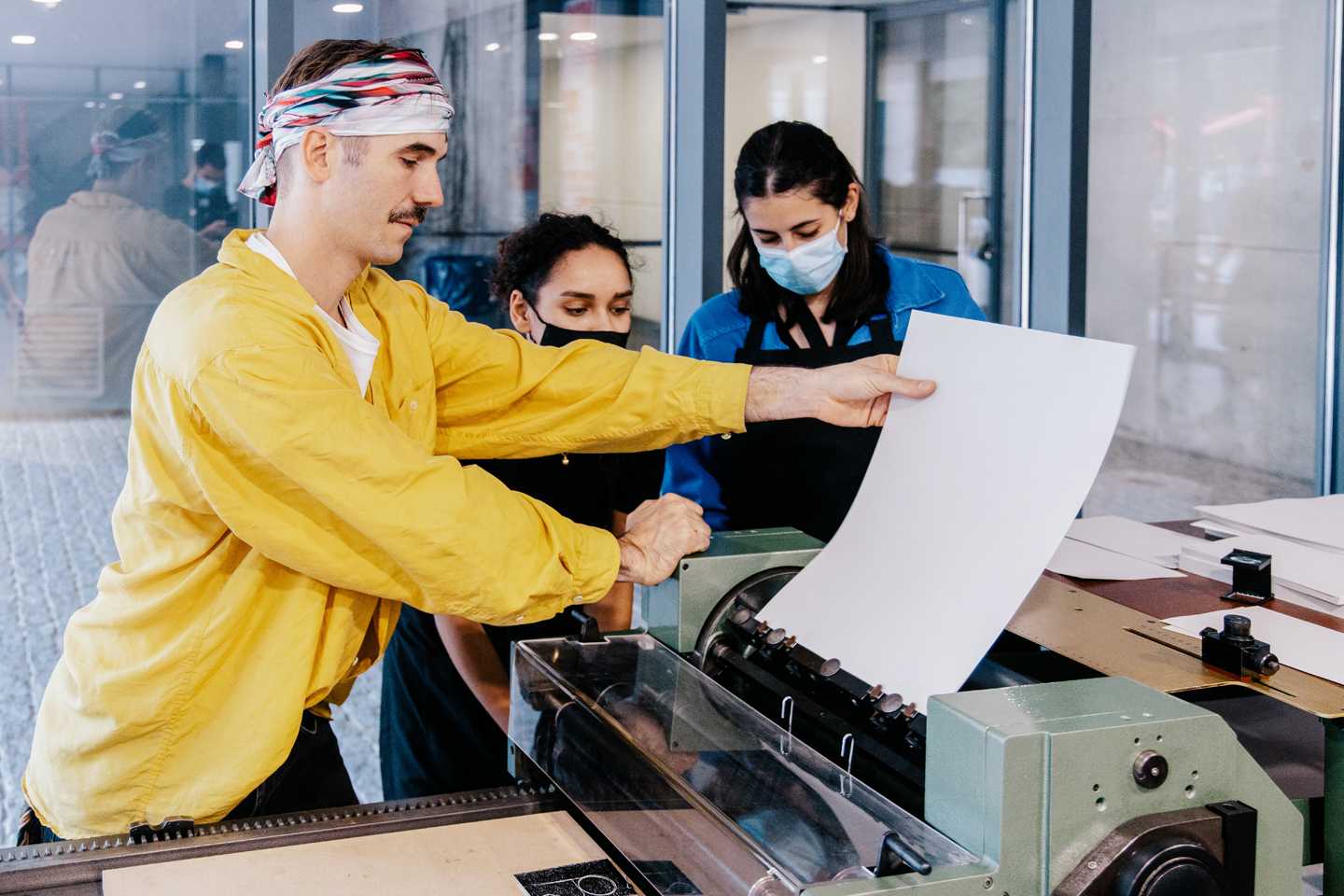 Alan Kitching (Reino Unido), Dafi Kühne (Suíça) e Rick Griffith (Estados Unidos) trouxeram três workshops à nova oficina de Tipografia de Caracteres Móveis da ESAD. Propôs-se uma exploração em ambiente de oficina, pela prática e experimentação. Desde a composição à execução das suas próprias matrizes impressoras e a impressão, os participantes tiveram oportunidade de explorar a técnica em contacto com cada um destes conceituados designers.